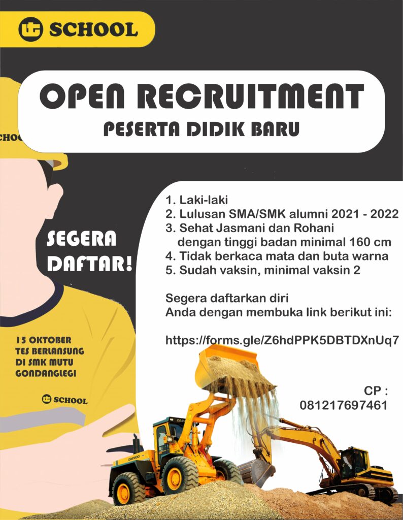 RECRUITMENT UT TRACTOR 2021-2022 Tinggalkan Komentar / Berita Pendidikan Terkini, Bursa Kerja Khusus / Oleh Admin SMK Mutu Dilihat Sebanyak: 407 TweetSharePinShare0 Shares