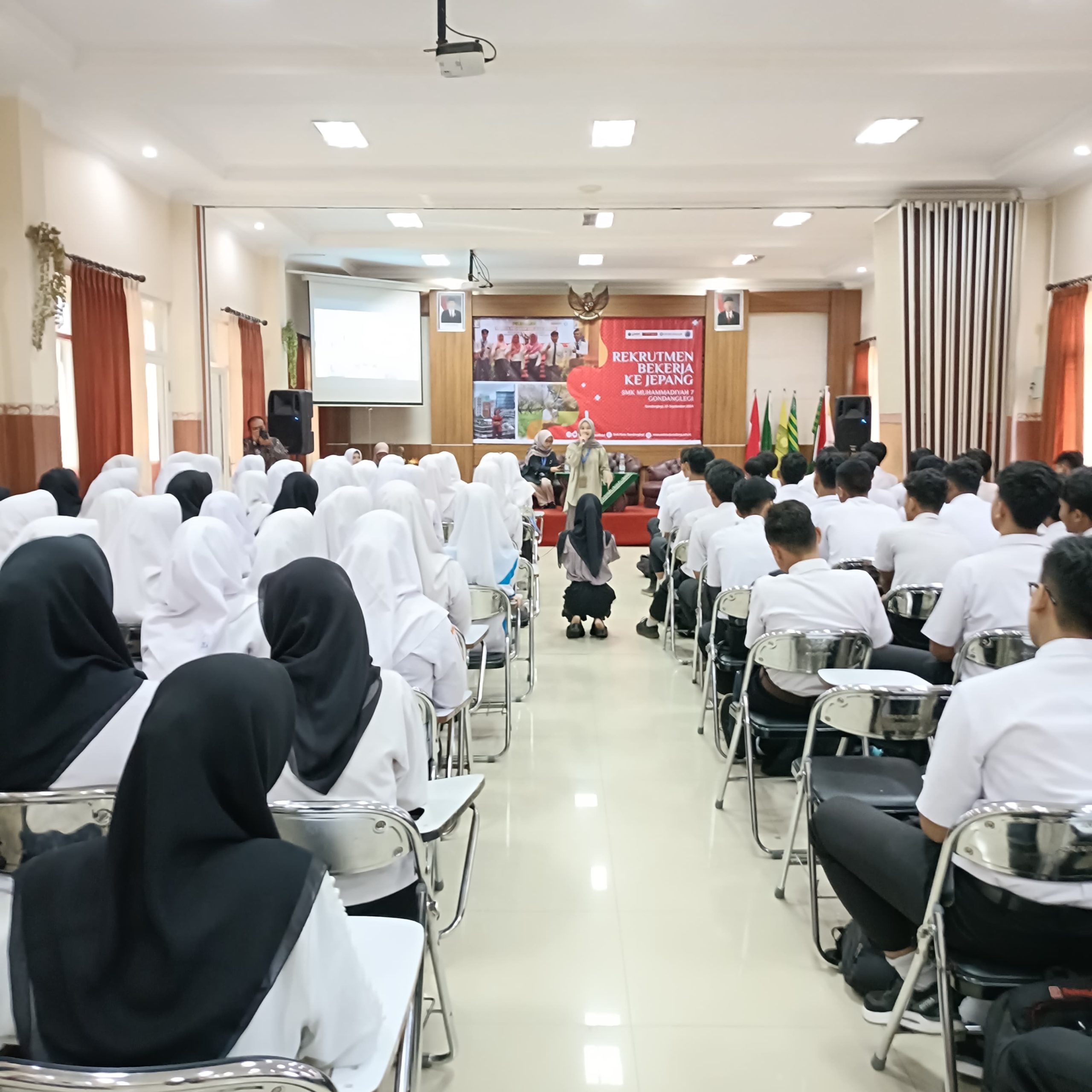 Gondanglegi- Sebanyak 183 peserta yang terdiri dari siswa kelas XII dan alumni SMK MUTU mengikuti seleksi kerja ke Jepang yang diadakan pada hari ini di Aula Lantai 2 Kampus 1 SMK MUTU. Acara ini dimulai pada pukul 08.00 WIB dan berlangsung hingga selesai.
