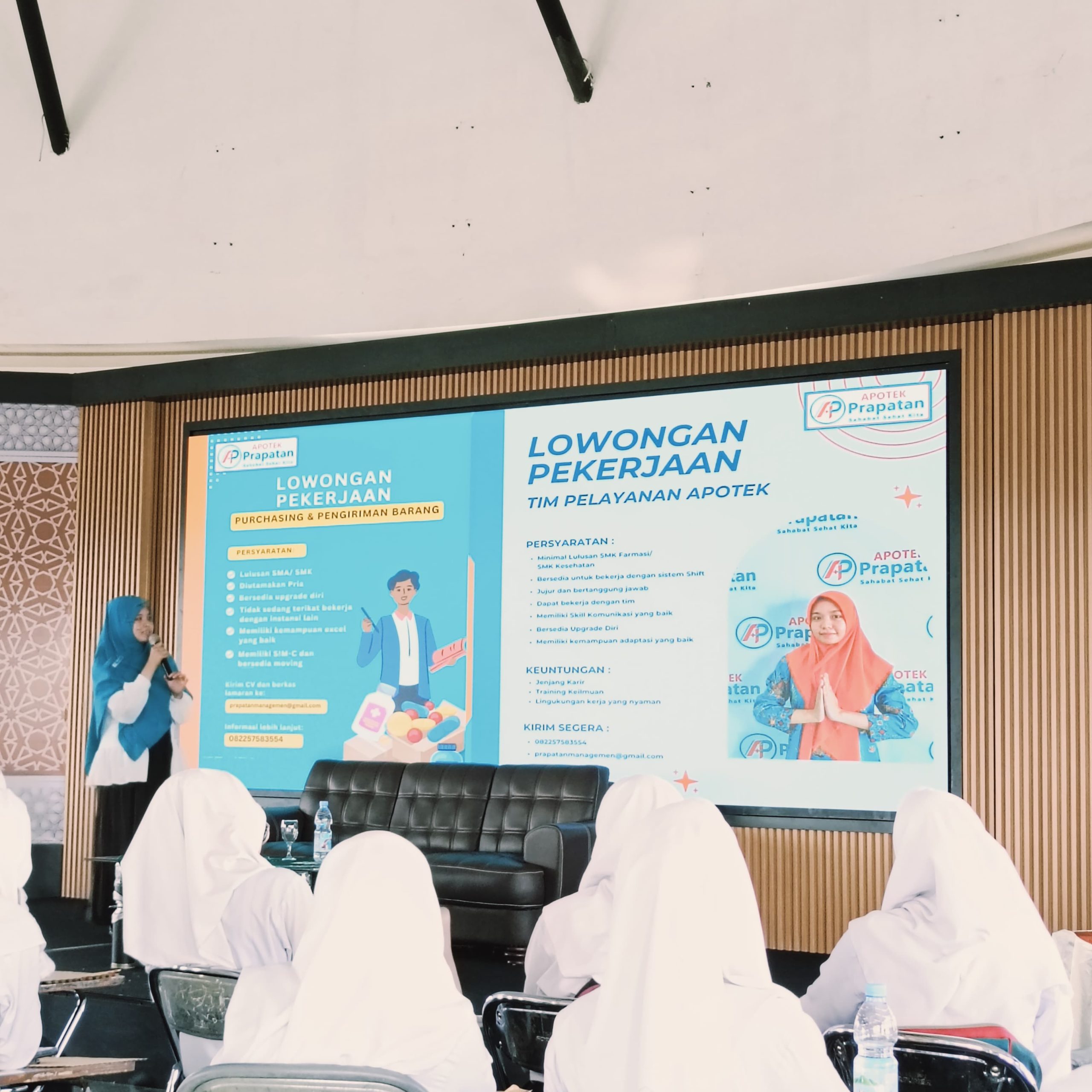 Selama berlangsungnya acara rekrutmen, para peserta mendapatkan kesempatan emas untuk lebih mengenal profil ketiga apotek mitra melalui sesi presentasi yang informatif dan interaktif. Sesi ini dirancang untuk memberikan gambaran menyeluruh tentang visi, misi, serta peluang karir yang ditawarkan oleh masing-masing apotek. Peserta tidak hanya mendengarkan, tetapi juga diberi kesempatan untuk mengajukan pertanyaan yang relevan sehingga mereka bisa mendapatkan pemahaman mendalam mengenai tempat kerja yang potensial.
